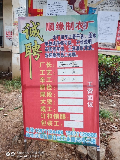 武漢順緣制衣廠是一家生產(chǎn)銷售一體的服裝公司,以生產(chǎn)夾克,棉襖為主,工價高。每月底發(fā)工資,車工7000至12000。赤壁有想來武漢賺錢聯(lián)系我。